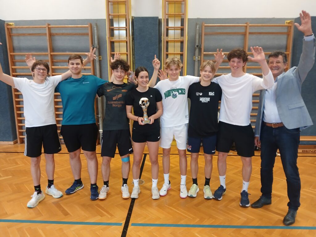Vier Mannschaften aus den Oberstufenklassen stellten sich der Herausforderung. Nachdem alle Teams gegeneinander angetreten waren, standen die Gegner für das Finale fest, wo sich schließlich die 6a gegen die 8A durchsetzen konnte. Sie ist nun ein halbes Jahr im Besitz des Wanderpokals. Herzliche Gratulation!